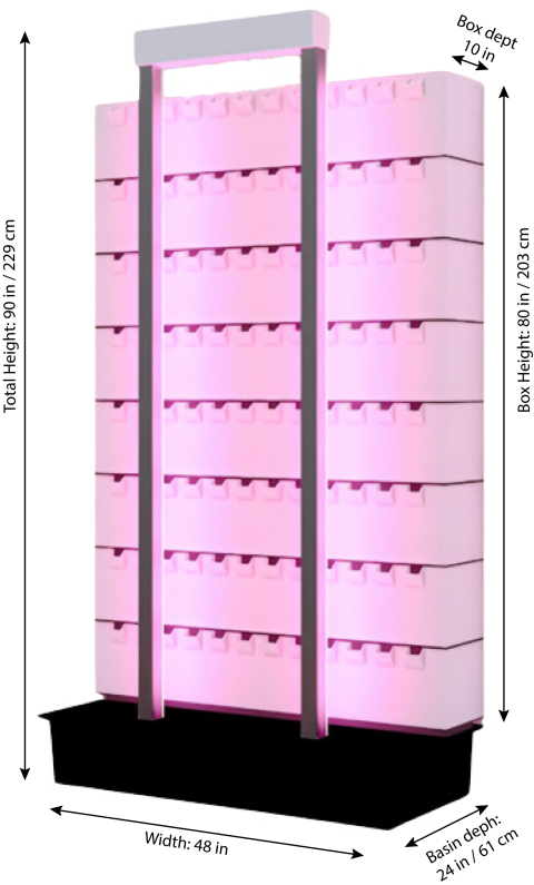 PremierGro’s 2nd generation Agriplay System transformed commercial indoor farming. Featuring stackable boxes and targeted spectrum lighting, it supports up to 900 plants within an 8′ x 4′ x 4′ footprint. The modular design enables seamless networking of multiple units, making it perfect for large-scale facilities of 10,000 square feet or more.